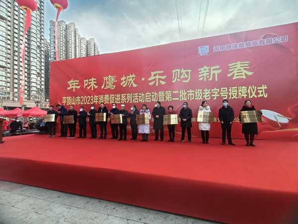 1月16日,由平顶山市人民政府主办,商务局、财政局等单位承办平顶山“年味鹰城·乐购新春”促消费系列活动暨第二批市级老字号授牌仪式启动,该市26个品牌获得“市级老字号”称号。